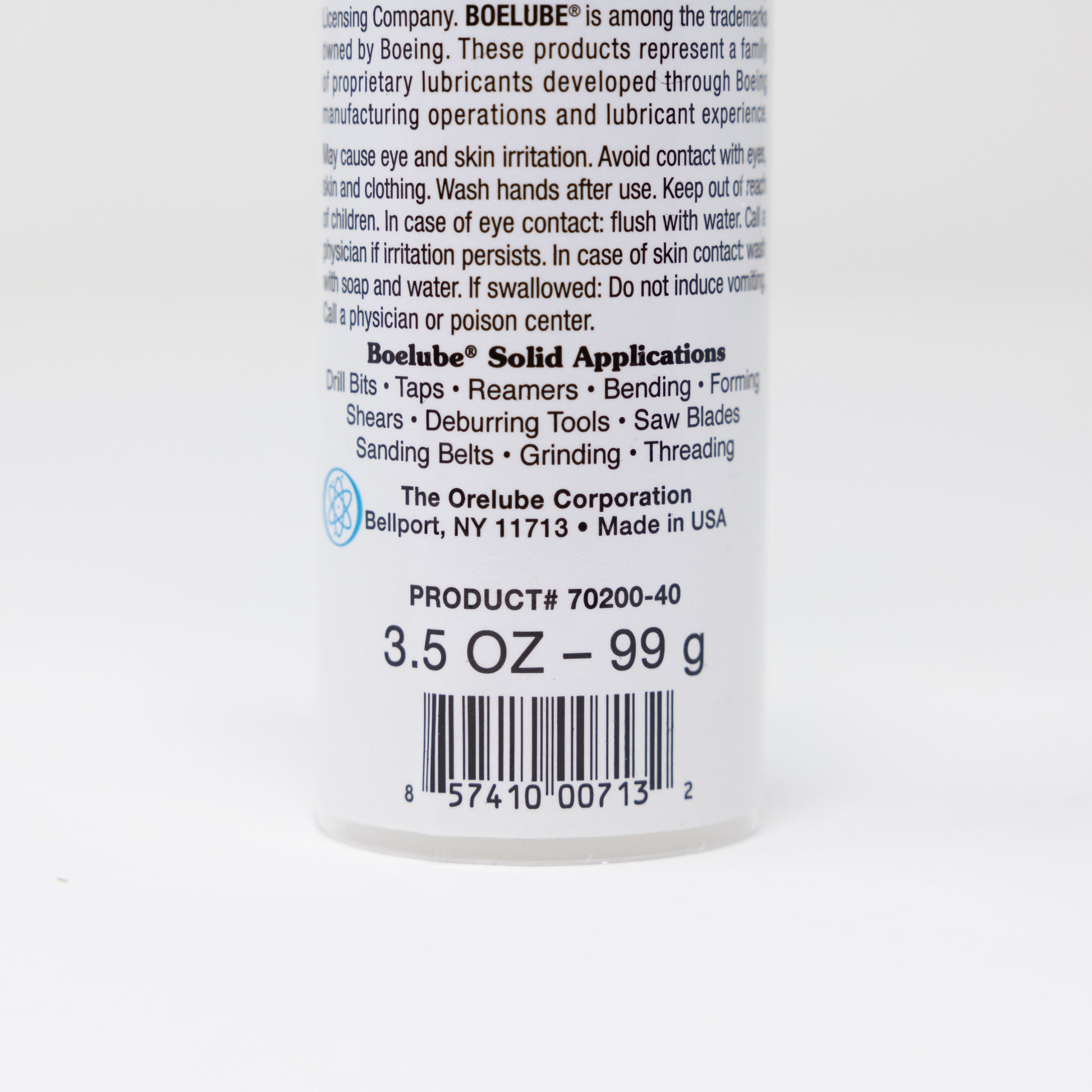 BOELUBE is non-corrosive, non-flammable, chemically stable, and free of halogens, sulfur, phosphorus, silicone, petroleum and paraffin wax.
